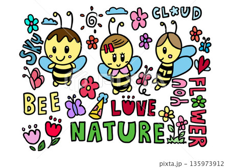 Cute hand drawn vector illustrations of bee, cat, pink bunny, post card, flowers, light bulb, apple, heart for decoration, stickers, kid drawing style, icons, animals, pet shop, patch, brooch, toy