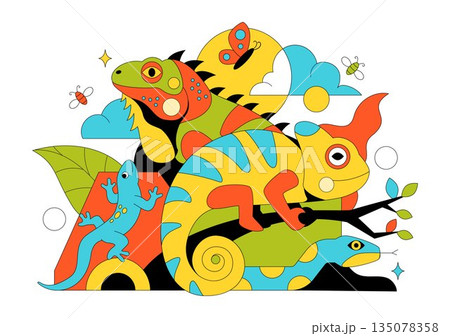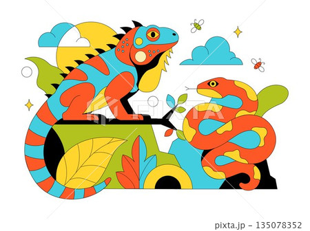 Reptile Vector Illustration Featuring Detailed Scales And Natural Wildlife Design With Various Species Of Reptilian Animals In Flat Background