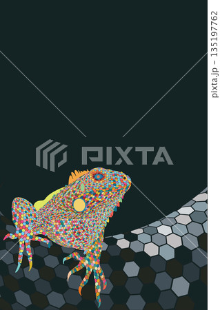 Colorful iguana portrait geometric shapes surrealism concept graphic illustrated have blank space.