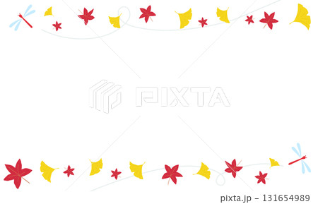 落葉、蜻蜓和音符的秋天簡單框架(水平寬)