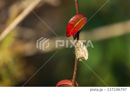 剛孵化的螳螂幼蟲和卵囊—春日景色