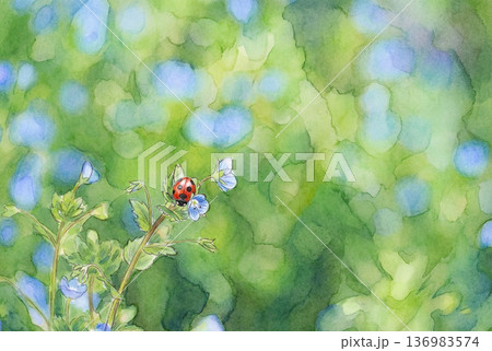 瓢蟲葉子水彩春季自然插畫剪貼畫素材