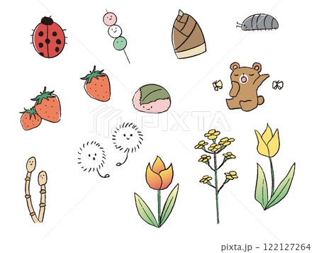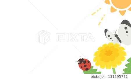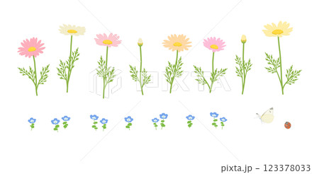 春花、菜粉蝶和瓢蟲的向量插圖集