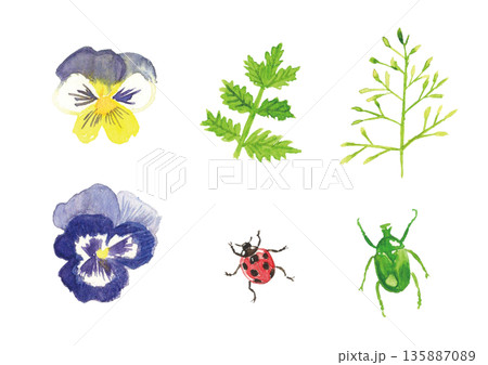 春天植物花卉和昆蟲插圖集
