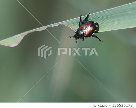 日本甲蟲在竹葉上休息