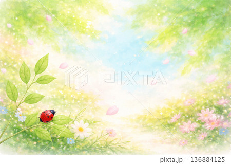 生物、自然、邊框、背景、橫向、手寫、粉彩、可愛、插圖