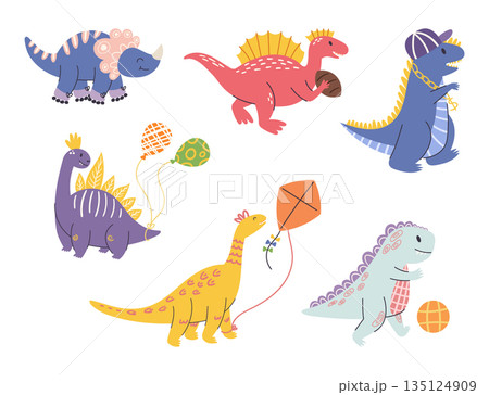 Whimsical Set Of Cartoon Dinosaur Characters, Perfect For Adding A Prehistoric Charm To Projects. Dino Personages