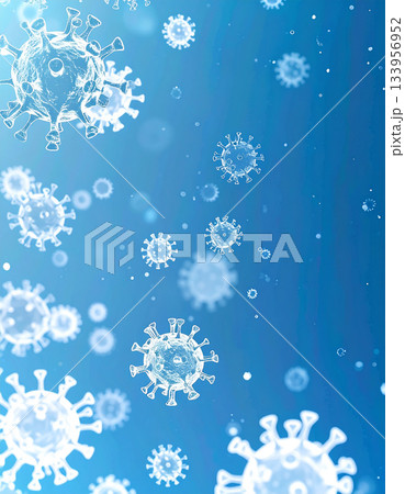 藍色背景上無數的白色輪廓代表了流感等三維病毒。