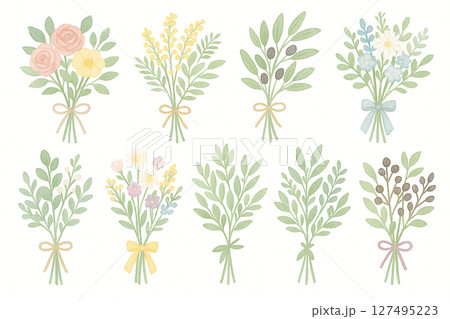 一組色彩柔和的水彩花卉插圖(透明背景)