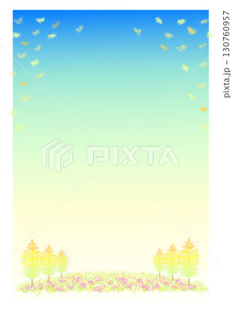 具有日本紙質感的秋季插圖(淺綠色背景)