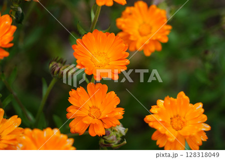 Beautiful Orange Calendula Flowers Blooming in the Garden. Selective Focus