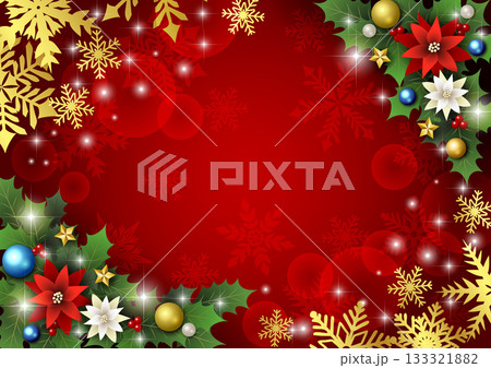 聖誕背景,球,金色,一品紅,冬青,可愛,插圖,橫向