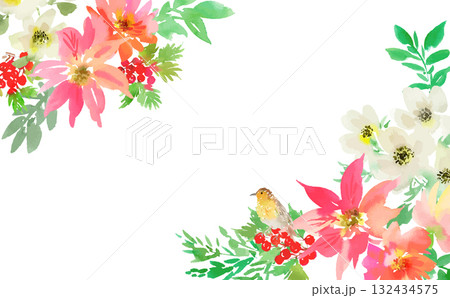 向量、水彩、剪貼畫、冬青、一品紅、玫瑰、銀蓮花、知更鳥、鳥、草、花、美麗、葉子、紅色