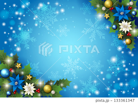 聖誕背景,藍色,一品紅,雪,冬青,可愛,插圖,橫向