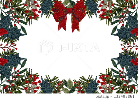[聖誕相框]手工刺繡插畫素材