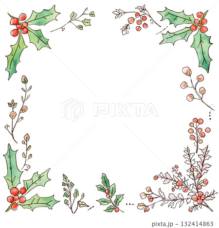 帶有輪廓的水彩冬青和漿果角框