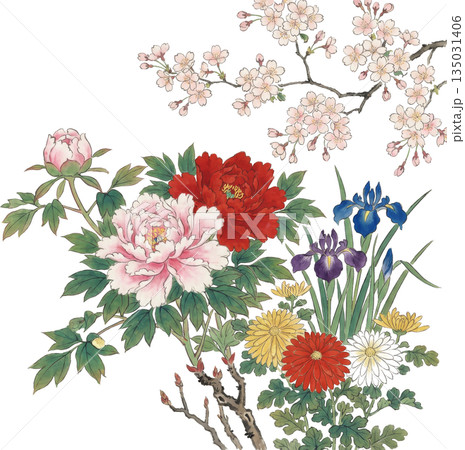 梅花和日本花卉的插圖