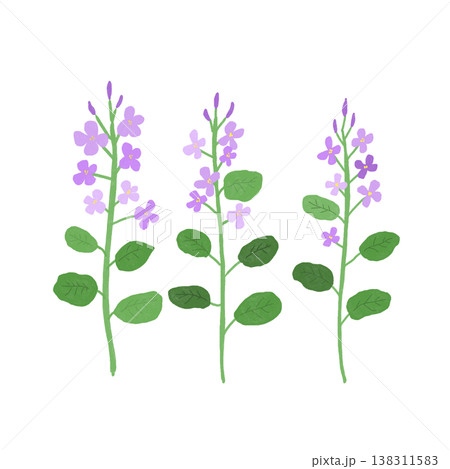 手繪線條畫和水彩插圖,描繪了盛開的櫻花蘿蔔花。