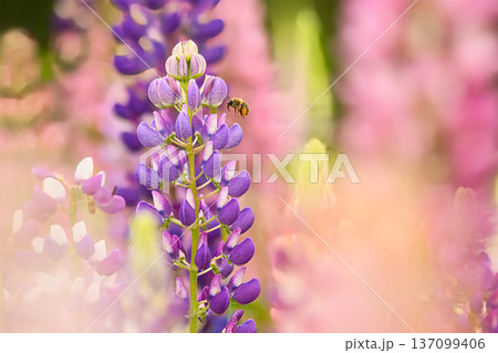 春日田野裡盛開的羽扇豆