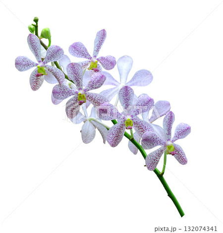 A bouquet of pink orchids with white dots in the garden with blurry green nature background