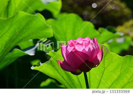 公園池塘裡盛開的粉紅睡蓮(夏季,八月)
