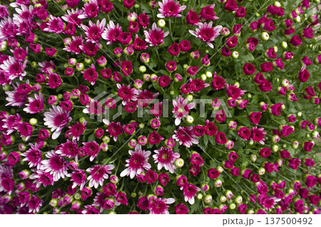 Beautiful close-up of purple and white chrysanthemums