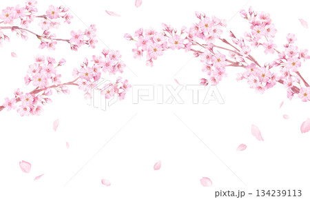 水彩櫻花邊框插畫,春季背景素材,花瓣飄動