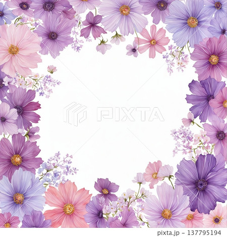 色彩繽紛的壓花相框 A4 直式背景素材,留有空白區域,花卉植物