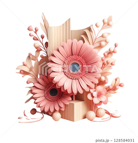 非洲菊花朵剪紙,照片影像,淡粉紅色,白色背景,透明PNG