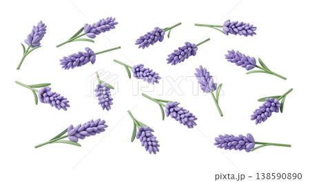 3D multi angle purple lavender flower asset sheet