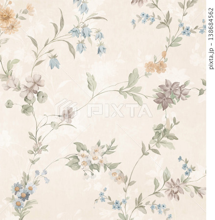 Collection of elegant vintage watercolor floral seamless patterns with soft muted tones