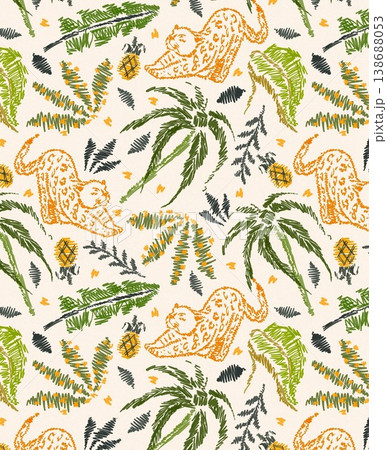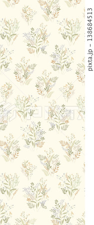 雨季花卉和草藥的無縫插圖