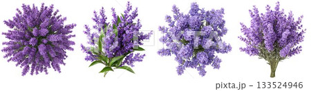 Exquisite Lavender Collection: Watercolor Illustrations of Aromatic Purple Flowers Isolated on Clean White Background