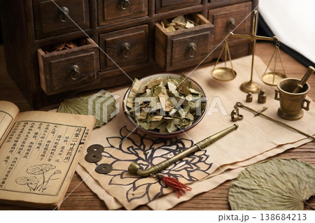 桑葉茶、花草茶、養生茶、茶葉盛於盤中