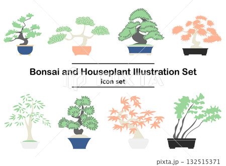 圖庫插圖: 盆景和室內植物圖示集