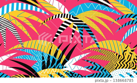 Seamless tropical pattern with stylized palm leaves and abstract background