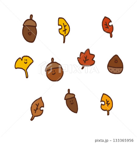 多個橡子套裝的插圖素材 | 秋天,堅果,透明PNG
