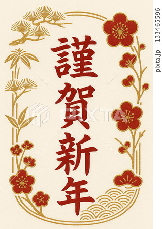 日式邊框背景,飾以鬆樹、竹子和梅花圖案