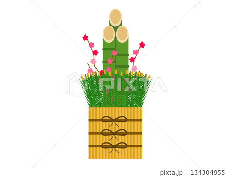 門松圖示插圖(線描彩色)