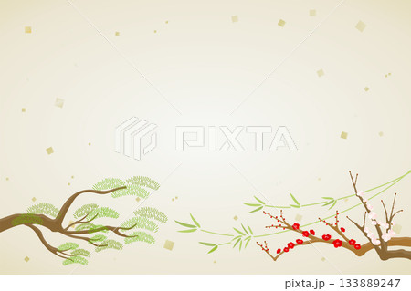 松竹梅鶴吉祥背景素材