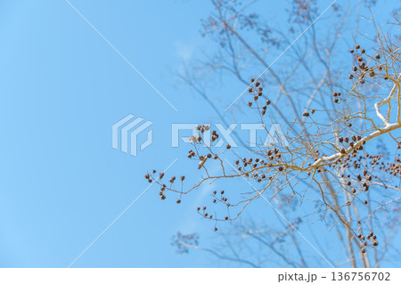 冬日晴空萬裡,枝頭纖細的頂端還掛著一粒果實。