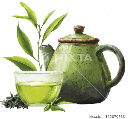 右下角是新鮮的綠葉和清爽閃亮的背景插畫。