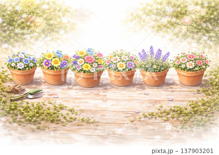 花盆系列:背景均勻分佈著一排排盛開的花盆。