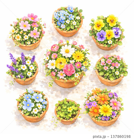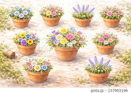 花盆系列:不同尺寸的花盆,全部盛開。