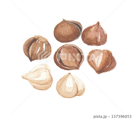 Watercolor Painting of Hazelnuts on White Background