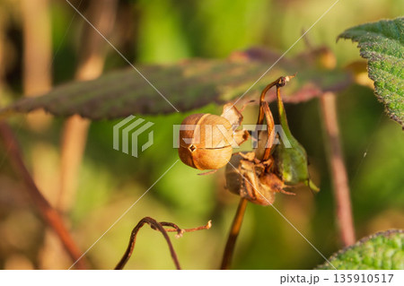 沐浴在冬日陽光下的枯萎芙蓉花