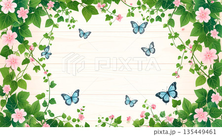 簡潔的框架,周圍環繞著綠色常春藤,天然裝飾背景