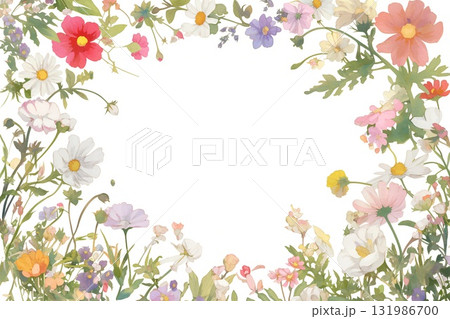 白色背景上柔和的春天色彩的時尚植物和花卉的插圖素材