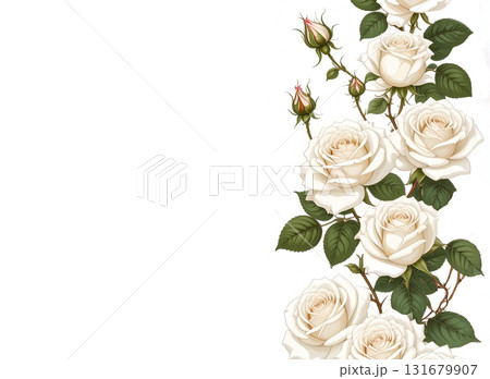 Elegant watercolor roses arranged with delicate leaves on a soft white background