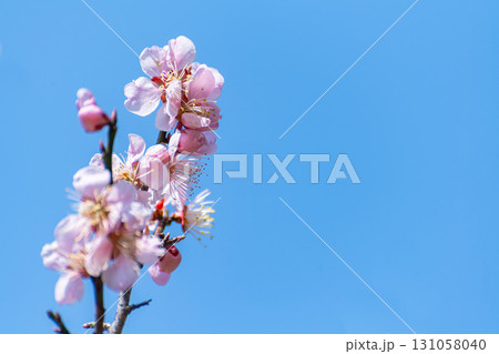 早春藍天映襯下的梅花特寫